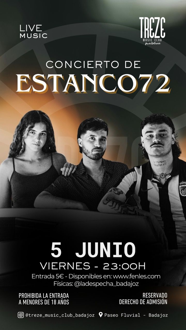 Concierto de Estanco72 en Treze Music Club (Badajoz) el 5 de junio de 2026 a las 23:00.